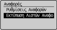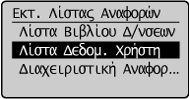 ] για να επισημάνετε το στοιχείο <Εκτύπωση Λιστών Αναφορών> και, στη συνέχεια, πατήστε το πλήκτρο [OK].