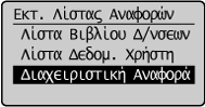 ] για να επισημάνετε το στοιχείο <Εκτύπωση Λιστών Αναφορών> και, στη συνέχεια, πατήστε το πλήκτρο [OK].