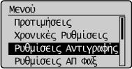 ] για να επισημάνετε το στοιχείο <Ρυθμίσεις Αντιγραφής> και, στη συνέχεια, πατήστε το πλήκτρο [OK].