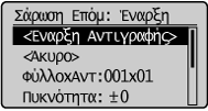 ] ή [ ] για να επισημάνετε το στοιχείο <Έναρξη Αντιγραφής> και, στη συνέχεια, πατήστε το πλήκτρο [OK].![]()