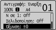 ] (ΦΑΞ/ΑΝΤΙΓΡΑΦΗ) για να μεταβείτε στην οθόνη κατάστασης αντιγραφής.