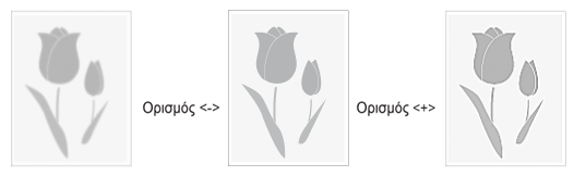 Για καθαρά κείμενα και γραμμές, ορίστε τη ρύθμιση στο κατάλληλο επίπεδο της κλίμακας <+>. Η ρύθμιση αυτή είναι ιδιαίτερα κατάλληλη για την αντιγραφή κυανοτυπιών αχνών εγγράφων που έχουν σχεδιαστεί με μολύβι.