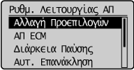 ] για να επισημάνετε το στοιχείο <Ρυθμίσεις Λειτουργίας ΑΠ> και, στη συνέχεια, πατήστε το πλήκτρο [OK].