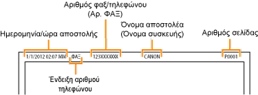 Τα στοιχεία εκτυπώνονται στο επάνω μέρος κάθε σελίδας που αποστέλλετε.
