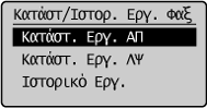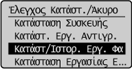 ] για να επισημάνετε το στοιχείο <Κατάσταση/Ιστορικό Εργασίας Φαξ> και, στη συνέχεια, πατήστε το πλήκτρο [OK].