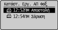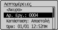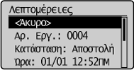 ] για να επισημάνετε το στοιχείο <Ναι> και, στη συνέχεια, πατήστε το πλήκτρο [OK].![]() Η εργασία αποστολής ακυρώνεται. Θα ακυρωθεί η μετάδοση φαξ προς όλους τους προορισμούς για τις διαδοχικές αποστολές.