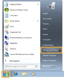 ] (Έναρξη) -> [Devices and Printers] (Συσκευές και εκτυπωτές).