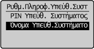 ] ή [ ] για να επισημάνετε το στοιχείο <Όνομα Υπεύθυνου Συστήματος> και, στη συνέχεια, πατήστε το πλήκτρο [OK]. ![]() |