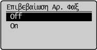 ] για να επισημάνετε την επιλογή <Off> or <On> και, στη συνέχεια, πατήστε το πλήκτρο [OK].