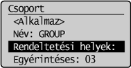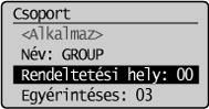 ] vagy a [ ] gombbal jelölje ki a <Csoport> elemet, majd nyomja meg az [OK] gombot.![]() |