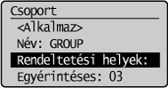 ] vagy a [ ] gombbal jelölje ki a <Rendeltetési hely> elemet, majd nyomja meg az [OK] gombot.![]() |