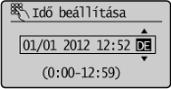 ] vagy [ ] gombbal jelölje ki a kívánt időformátumot, majd nyomja meg az [OK] gombot.A választható időformátumok a következők: 12 órás (DE/DU)