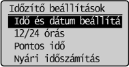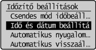 ] gombbal jelölje ki a <Idő és dátum beállítás> elemet, majd nyomja meg az [OK] gombot.