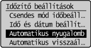 ] gombbal jelölje ki a <Automatikus nyugalomba térési idő> elemet, majd nyomja meg az [OK] gombot.