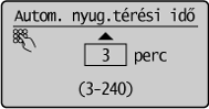 Az automatikus nyugalomba térési idő beállításai:Az automatikus alvó üzemmód időzítése <3> és <240> perc között adható meg, egy perces időközökkel. Az alapértelmezett beállítás: <3> perc.