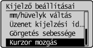 ] gombbal jelölje ki a <Kurzor mozgás> elemet, majd nyomja meg az [OK] gombot.