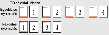 A készülék a papír elülső oldalára nyomtat minden oldalt egyoldalas nyomtatásnál, ezáltal a páratlan oldalak mind egyoldalas, mind kétoldalas nyomtatás esetén a papír elülső oldalára kerülnek.
