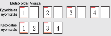 A készülék a papír hátsó oldalára nyomtat minden oldalt (mind a páratlan, mind a páros oldalakat) egyoldalas nyomtatás esetén, míg kétoldalas nyomtatásnál az elülső oldalra nyomtatja a páratlan oldalakat, az alábbi ábra szerint.