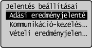 ] gombbal jelölje ki az <Adási eredmény jelentés> elemet, majd nyomja meg az [OK] gombot.