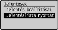 ] gombbal jelölje ki a <Jelentéslista nyomtatás> elemet, majd nyomja meg az [OK] gombot.