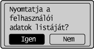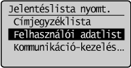 ] gombbal jelölje ki a <Felhasználói adatlista> elemet, majd nyomja meg az [OK] gombot.