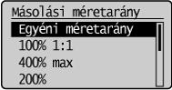] gombbal jelölje ki a <Másolási méretarány> elemet, majd nyomja meg az [OK] gombot.