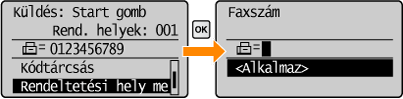 Ha a címzettek megadása a számbillentyűk használatával történik (Rendeltetési hely megadása (Új)): |