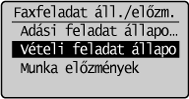 ] gombbal jelölje ki a <Faxfeladat állapot/előzmény> elemet, majd nyomja meg az [OK] gombot.