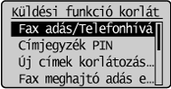] gombbal jelölje ki a <Fax adás/Telefonhívás korlátozása> elemet, majd nyomja meg az [OK] gombot.