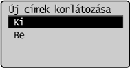] gombbal jelölje ki a <Új címek korlátozása> elemet, majd nyomja meg az [OK] gombot.