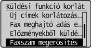 ] gombbal jelölje ki a <Küldési funkció korlátozás> elemet, majd nyomja meg az [OK] gombot.