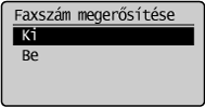 A faxszám megerősítő képernyője:Ez a képernyő csak akkor jelenik meg, ha a számgombok segítségével ad meg címzetteket.