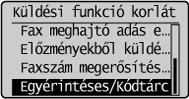 ] gombbal jelölje ki a <Küldési funkció korlátozás> elemet, majd nyomja meg az [OK] gombot.