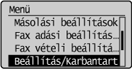 ] gombbal jelölje ki a <Beállítás/Karbantartás> elemet, majd nyomja meg az [OK] gombot.