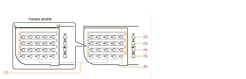 Nospiediet, lai sastādītu ārējās līnijas piekļuves numuru vai paplašinājuma numuru, ja iekārta ir pievienota, izmantojot vadības pulti (PBX).
