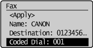 ] vai [ ], lai izceltu <Coded Dial>, un pēc tam nospiediet [OK] (Labi).![]() |