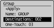 ] vai [ ], lai izceltu grupai pievienojamo adresātu, pēc tam nospiediet [OK] (Labi).![]() |