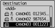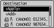 ] vai [ ], lai izceltu pievienojamo adresātu, pēc tam nospiediet [OK] (Labi).![]() |