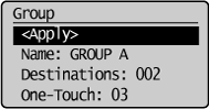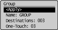 ] vai [ ], lai izceltu <Group>, un pēc tam nospiediet [OK] (Labi).![]() |