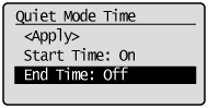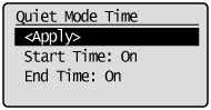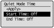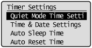], lai izceltu <Quiet Mode Time Settings>, un pēc tam nospiediet [OK] (Labi).
