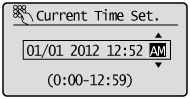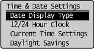 ] vai [ ], lai izceltu laika formātu, un pēc tam nospiediet [OK] (Labi).Ir pieejami šādi laika formāti: 12 Hour (AM/PM)