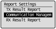], lai izceltu <Communication Management Report>, un pēc tam nospiediet [OK] (Labi).