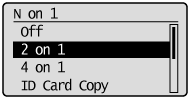 ], lai izceltu <2 on 1> vai <4 on 1>, un pēc tam nospiediet [OK] (Labi).
