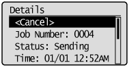], lai izceltu <Yes>, un pēc tam nospiediet [OK] (Labi).![]() Sūtīšanas darbs tiek atcelts. Secīgajā apraidē tiks atcelta faksa pārraidīšana visiem adresātiem.