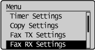 ], lai izceltu <Fax RX Settings>, un pēc tam nospiediet [OK] (Labi).