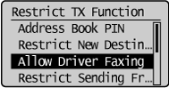 ], lai izceltu <Allow Fax Driver TX>, un pēc tam nospiediet [OK] (Labi).