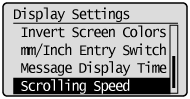 ], kad paryškintumėte <Scrolling Speed>, tada paspauskite [OK] (Gerai).