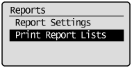 ], kad paryškintumėte <Print Report Lists>, tada paspauskite [OK] (Gerai).