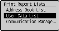 ], kad paryškintumėte <User Data List>, tada paspauskite [OK] (Gerai).