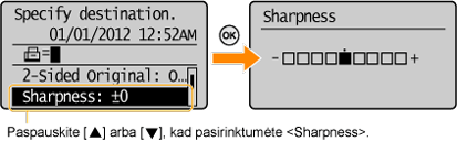 Jei norite aiškiai nuskaityti tekstą arba linijas, naudodamiesi <+> skale nustatykite atitinkamą šio parametro lygį. Jis labiausiai tinka nuskaitant šviesoraščius ir neryškių brėžinių dokumentus.